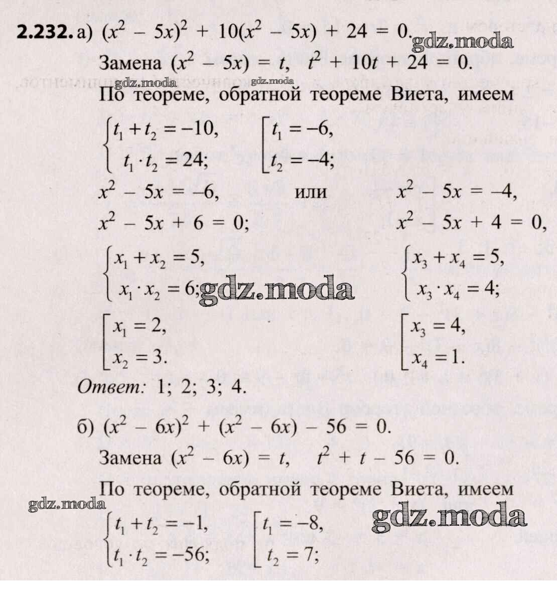 ОТВЕТ на задание № 2.232 Учебник по Алгебре 8 класс Арефьева
