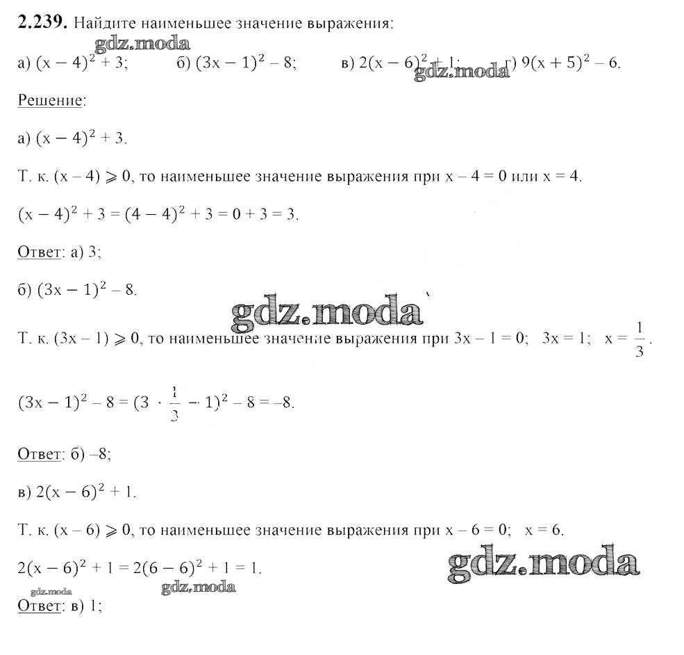 ОТВЕТ на задание № 2.239 Учебник по Алгебре 8 класс Арефьева