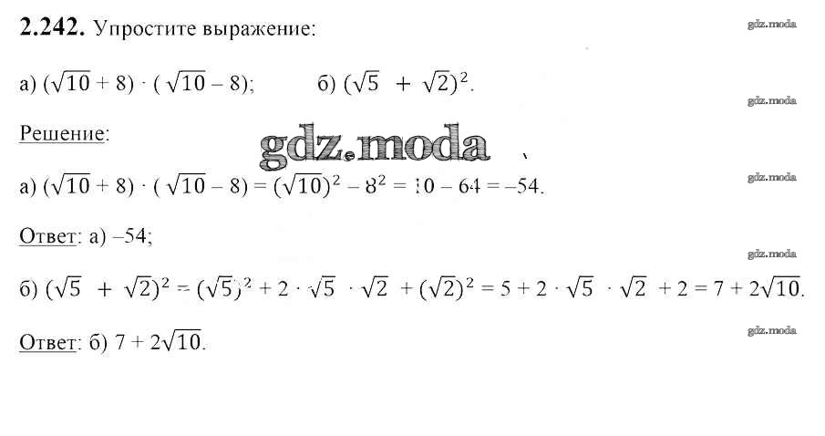 ОТВЕТ на задание № 2.242 Учебник по Алгебре 8 класс Арефьева