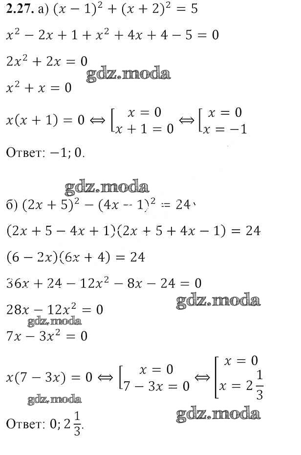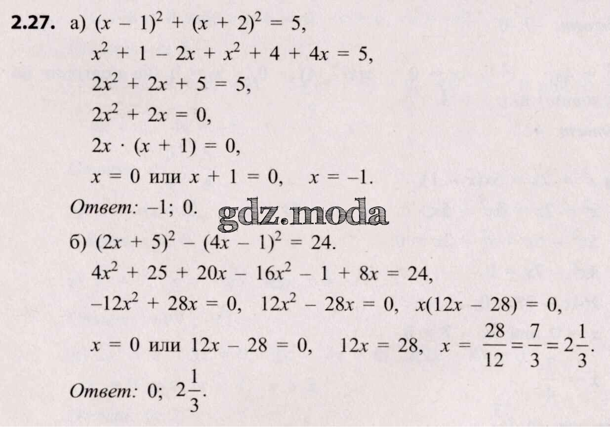 ОТВЕТ на задание № 2.27 Учебник по Алгебре 8 класс Арефьева