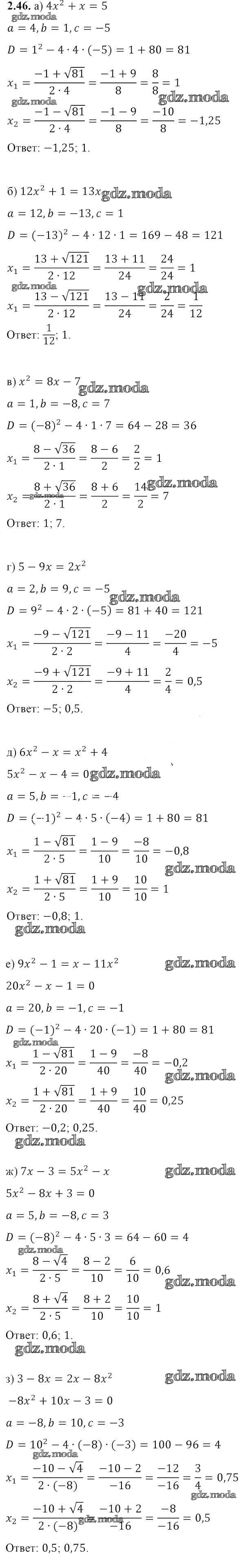 ОТВЕТ на задание № 2.46 Учебник по Алгебре 8 класс Арефьева