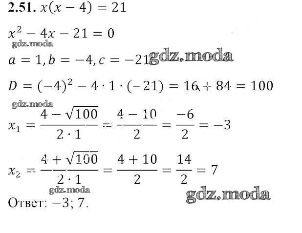 ОТВЕТ на задание № 2.51 Учебник по Алгебре 8 класс Арефьева