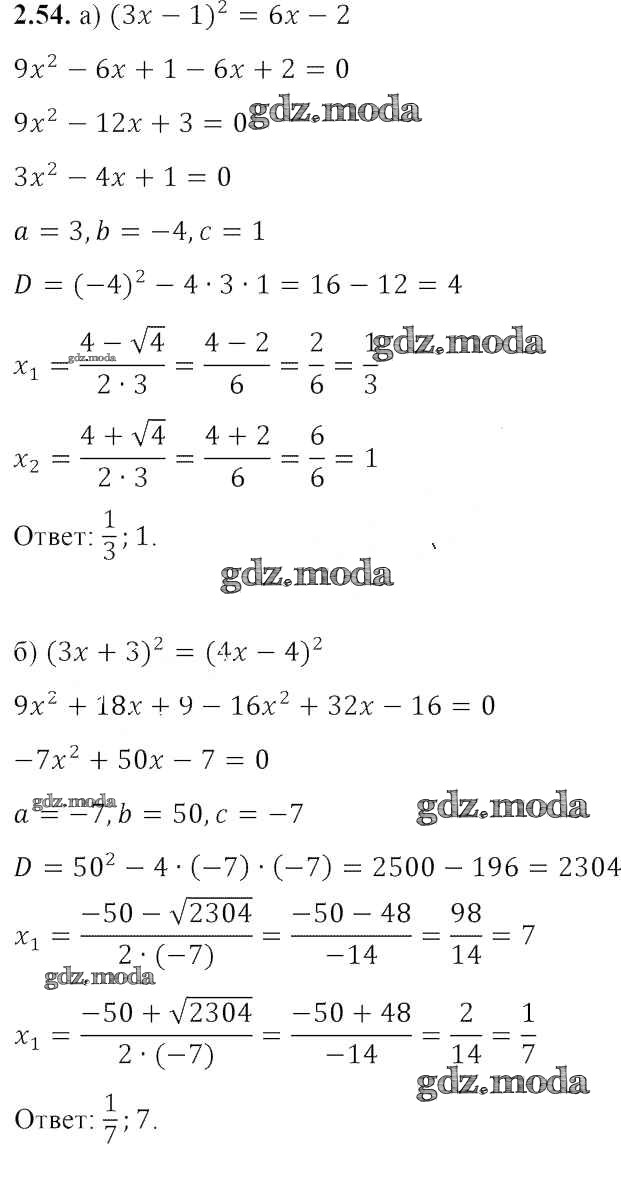 ОТВЕТ на задание № 2.54 Учебник по Алгебре 8 класс Арефьева