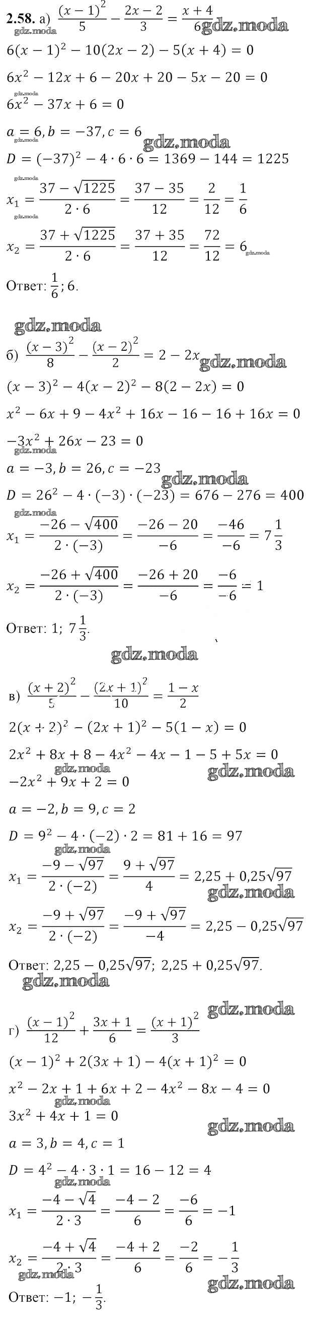 ОТВЕТ на задание № 2.58 Учебник по Алгебре 8 класс Арефьева