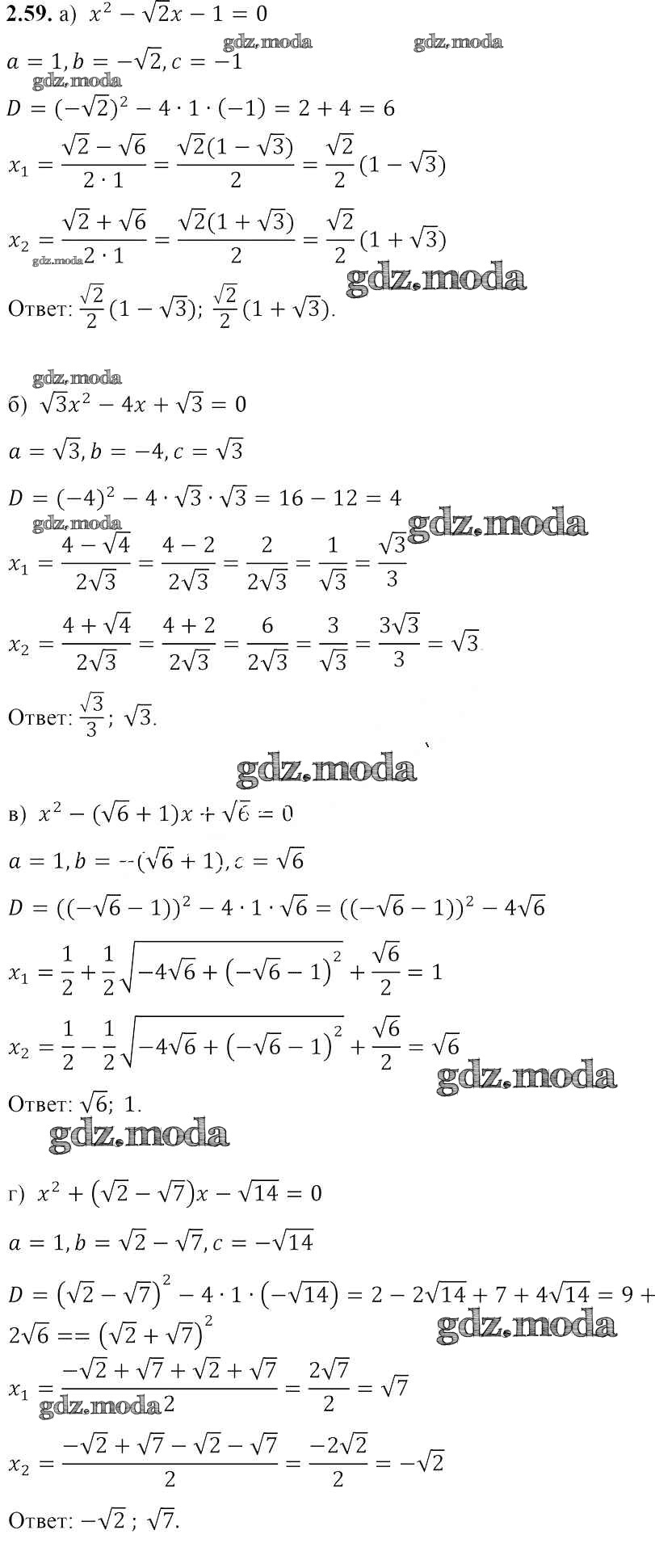 ОТВЕТ на задание № 2.59 Учебник по Алгебре 8 класс Арефьева