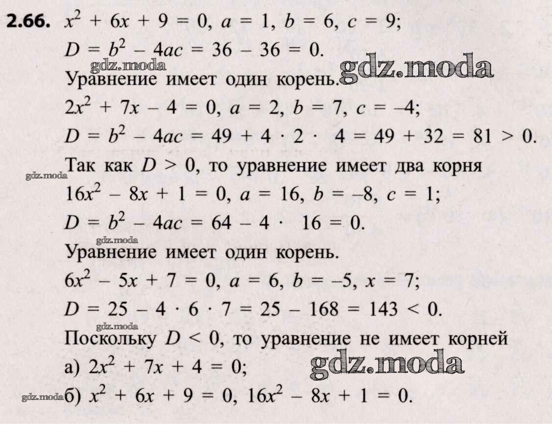 ОТВЕТ на задание № 2.66 Учебник по Алгебре 8 класс Арефьева
