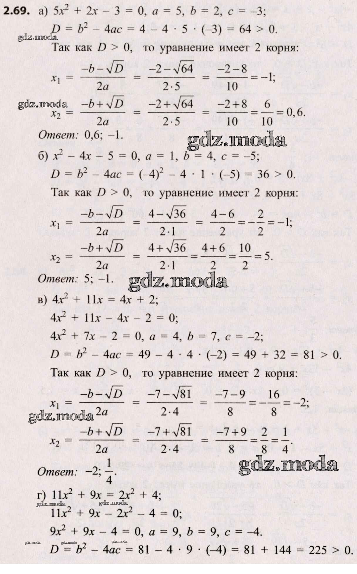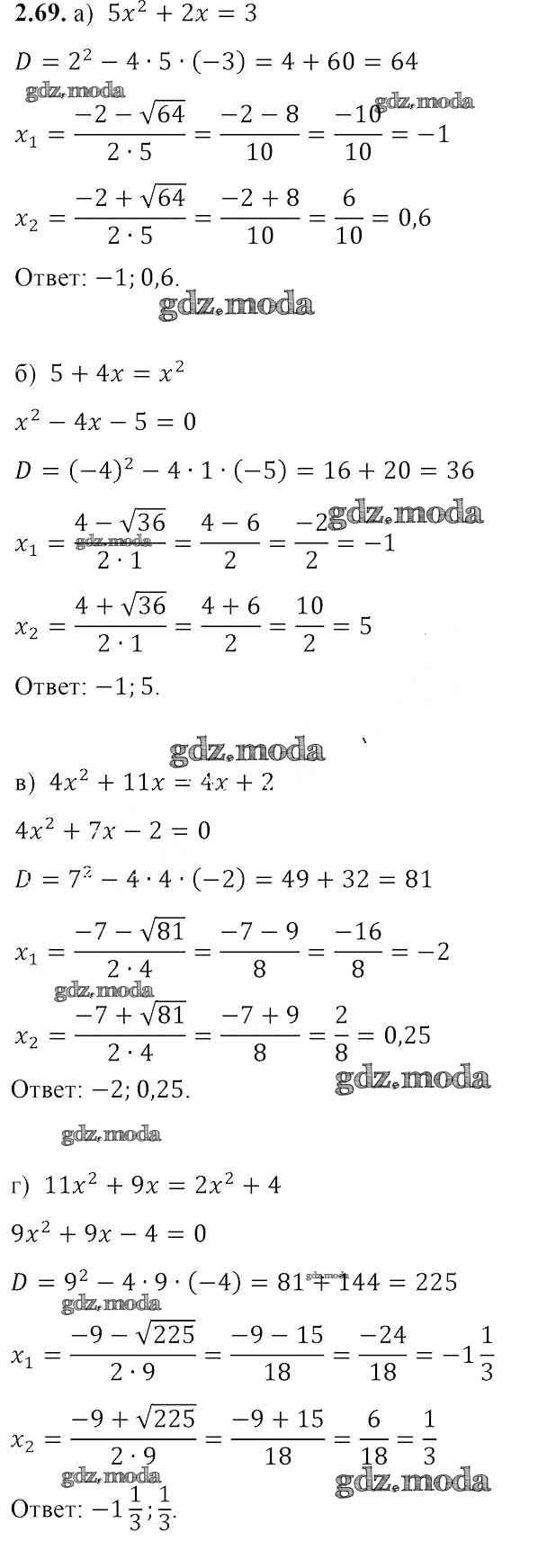 ОТВЕТ на задание № 2.69 Учебник по Алгебре 8 класс Арефьева
