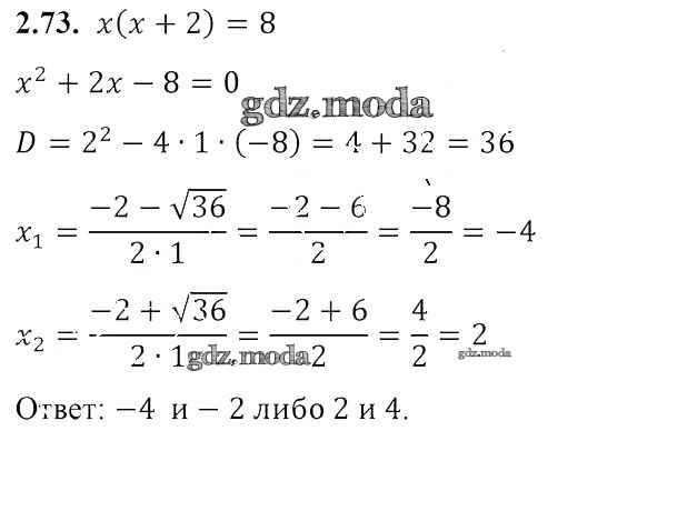 ОТВЕТ на задание № 2.73 Учебник по Алгебре 8 класс Арефьева