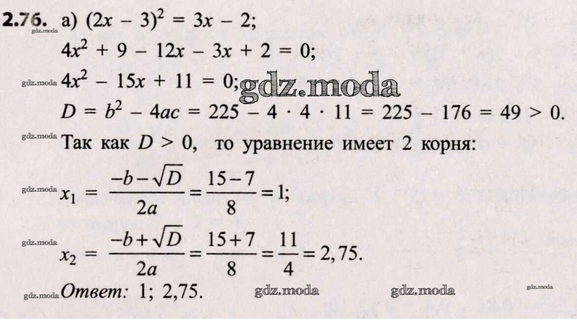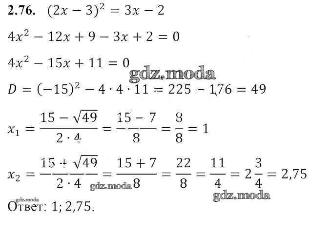 ОТВЕТ на задание № 2.76 Учебник по Алгебре 8 класс Арефьева