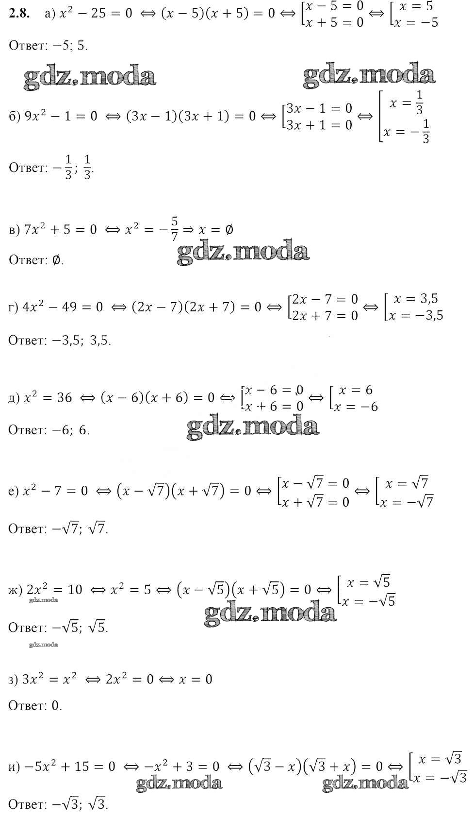 ОТВЕТ на задание № 2.8 Учебник по Алгебре 8 класс Арефьева