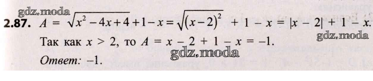 ОТВЕТ на задание № 2.87 Учебник по Алгебре 8 класс Арефьева