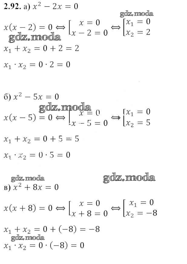 ОТВЕТ на задание № 2.92 Учебник по Алгебре 8 класс Арефьева