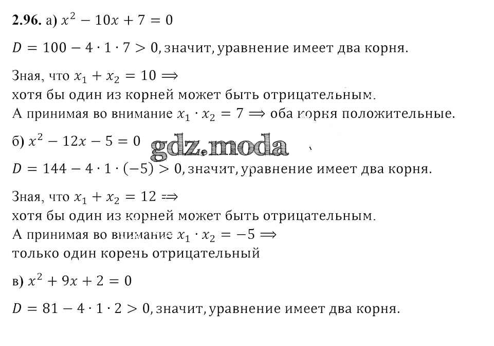 ОТВЕТ на задание № 2.96 Учебник по Алгебре 8 класс Арефьева