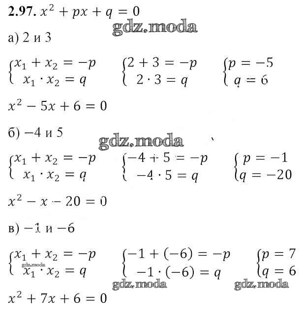 ОТВЕТ на задание № 2.97 Учебник по Алгебре 8 класс Арефьева