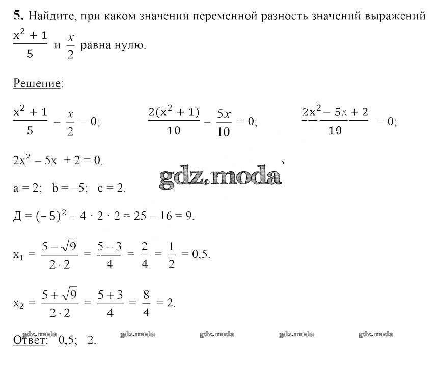 ОТВЕТ на задание № 5 Учебник по Алгебре 8 класс Арефьева