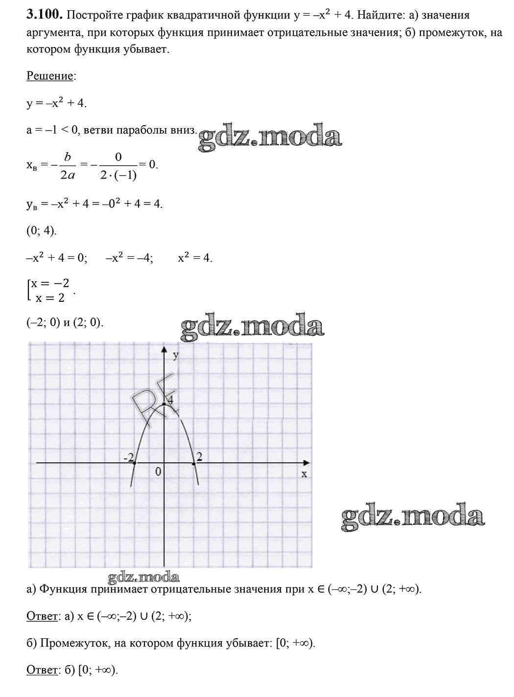 ОТВЕТ на задание № 3.100 Учебник по Алгебре 8 класс Арефьева