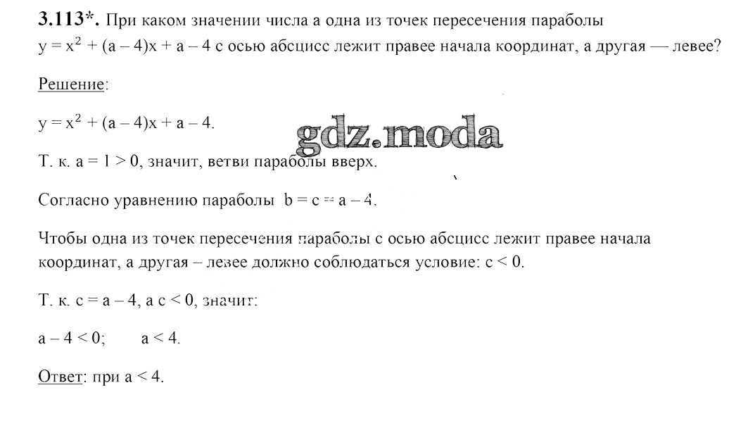 ОТВЕТ на задание № 3.113 Учебник по Алгебре 8 класс Арефьева