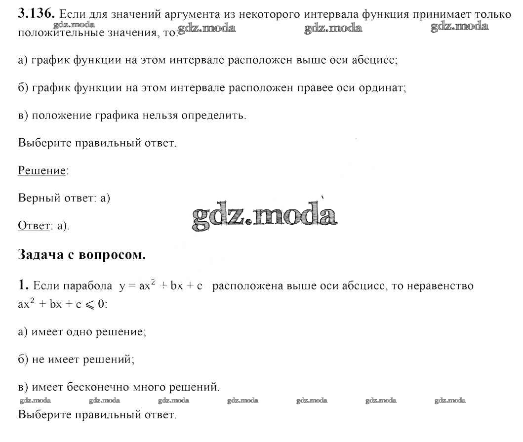 ОТВЕТ на задание № 3.136 Учебник по Алгебре 8 класс Арефьева