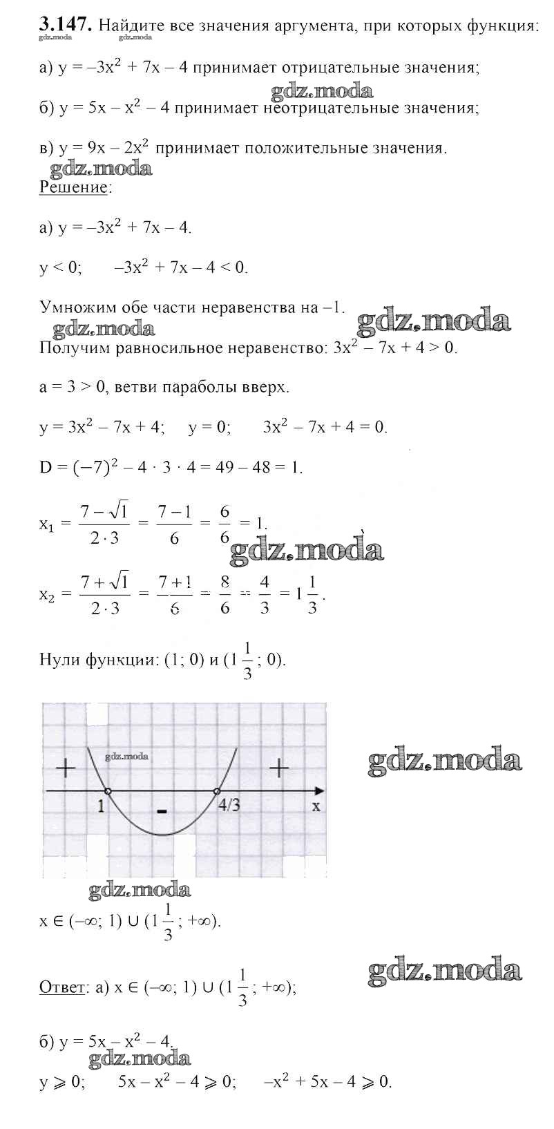 ОТВЕТ на задание № 3.147 Учебник по Алгебре 8 класс Арефьева