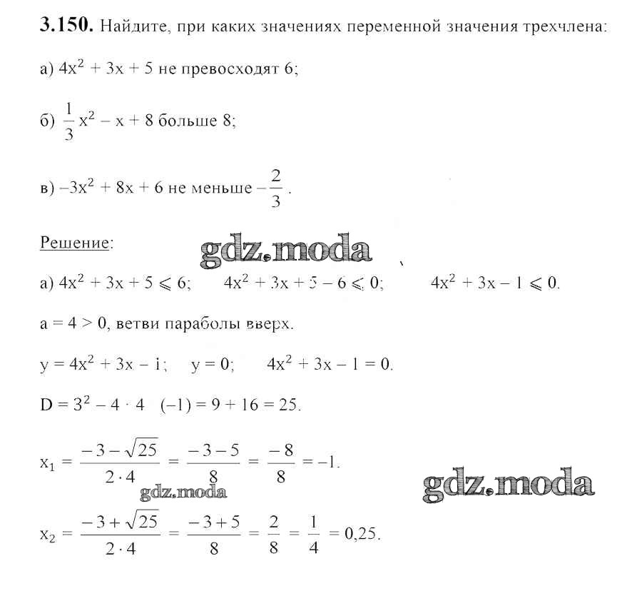 ОТВЕТ на задание № 3.150 Учебник по Алгебре 8 класс Арефьева