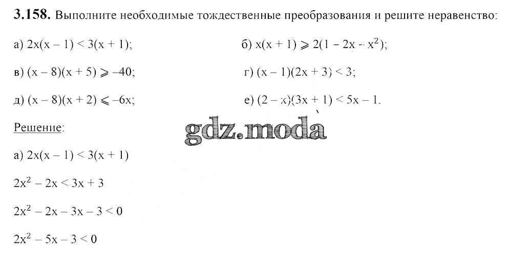 ОТВЕТ на задание № 3.158 Учебник по Алгебре 8 класс Арефьева