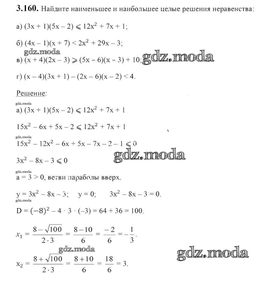 ОТВЕТ на задание № 3.160 Учебник по Алгебре 8 класс Арефьева