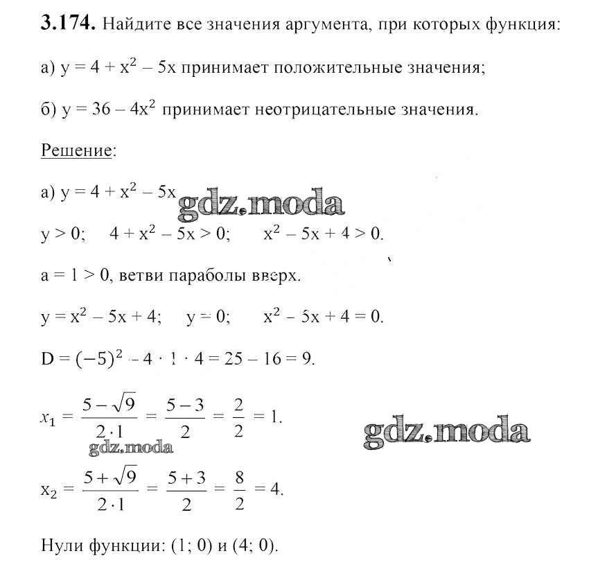 ОТВЕТ на задание № 3.174 Учебник по Алгебре 8 класс Арефьева