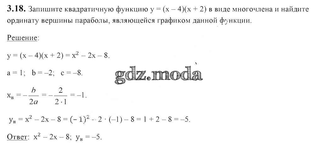 ОТВЕТ на задание № 3.18 Учебник по Алгебре 8 класс Арефьева