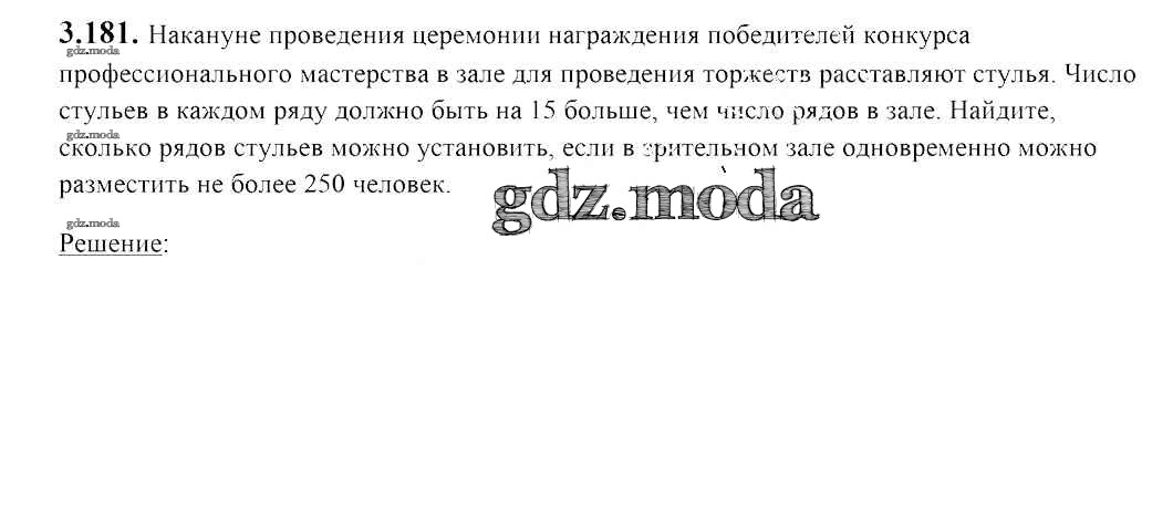 ОТВЕТ на задание № 3.181 Учебник по Алгебре 8 класс Арефьева