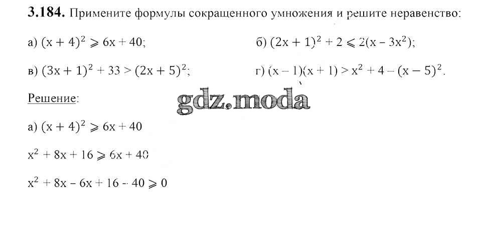ОТВЕТ на задание № 3.184 Учебник по Алгебре 8 класс Арефьева