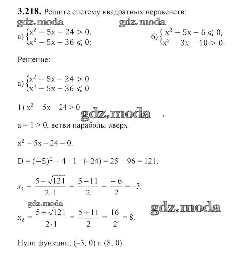 ОТВЕТ на задание № 3.218 Учебник по Алгебре 8 класс Арефьева