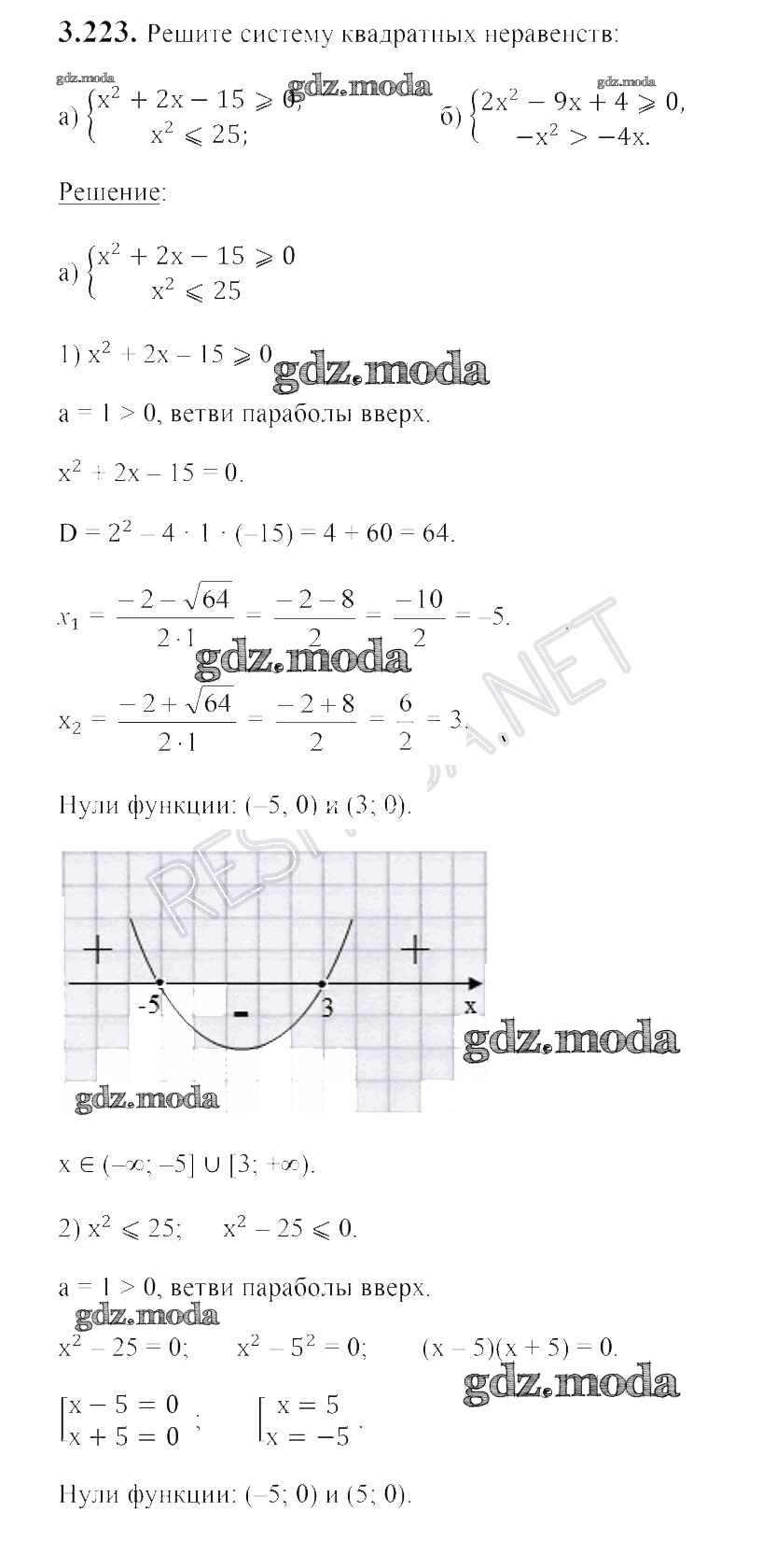ОТВЕТ на задание № 3.223 Учебник по Алгебре 8 класс Арефьева