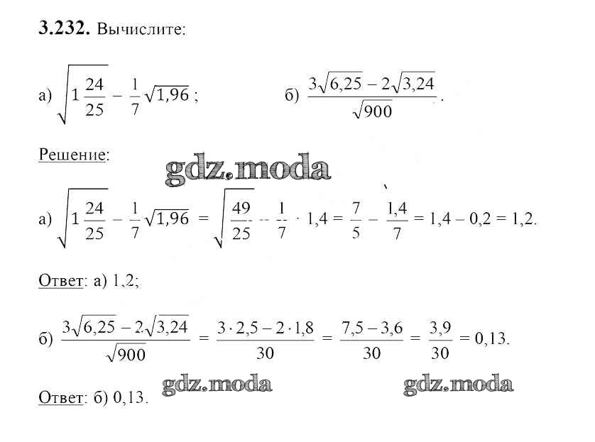 ОТВЕТ на задание № 3.232 Учебник по Алгебре 8 класс Арефьева