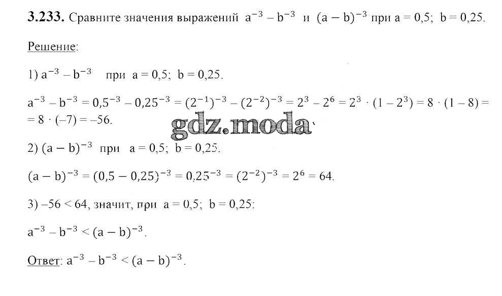 ОТВЕТ на задание № 3.233 Учебник по Алгебре 8 класс Арефьева
