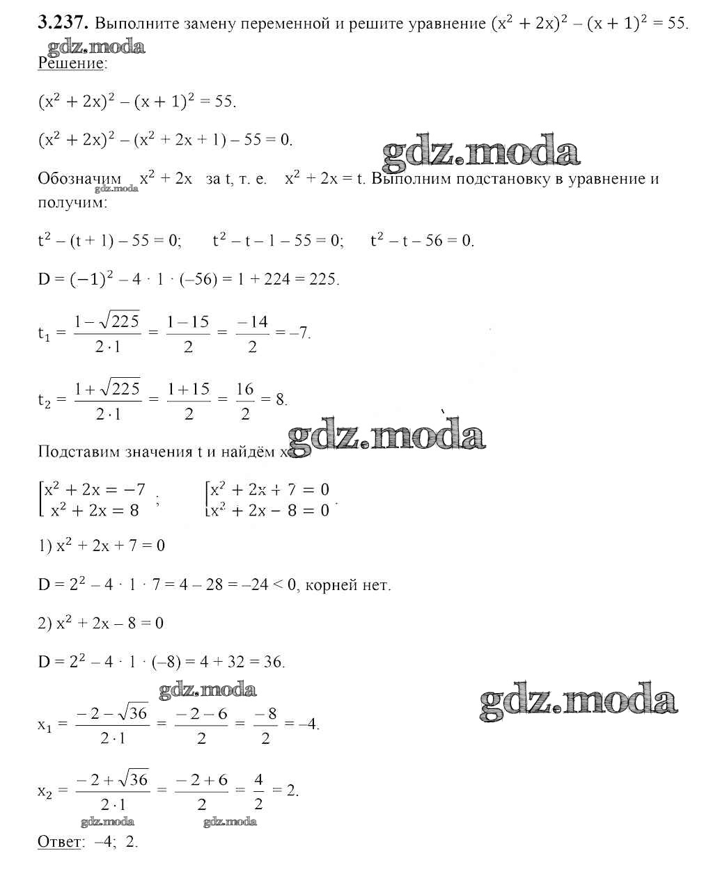 ОТВЕТ на задание № 3.237 Учебник по Алгебре 8 класс Арефьева