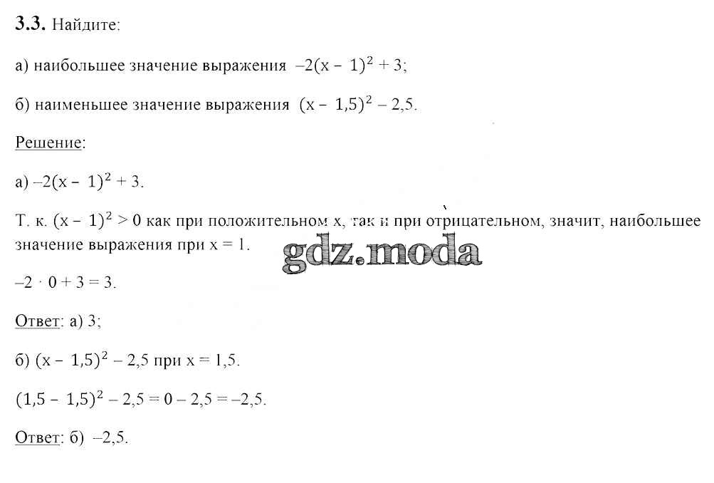 ОТВЕТ на задание № 3.3 Учебник по Алгебре 8 класс Арефьева