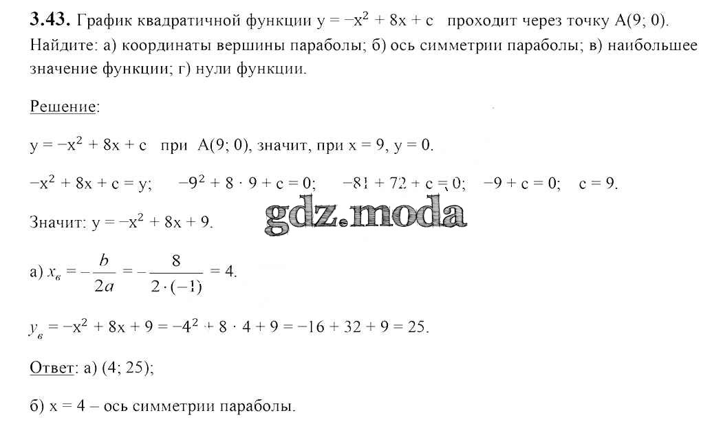 ОТВЕТ на задание № 3.43 Учебник по Алгебре 8 класс Арефьева