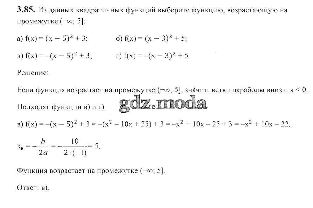 ОТВЕТ на задание № 3.85 Учебник по Алгебре 8 класс Арефьева