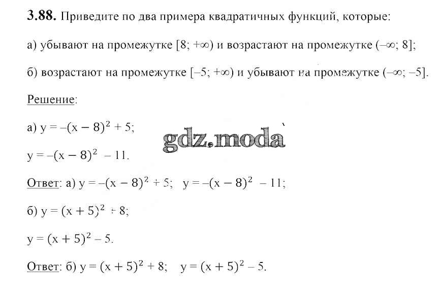 ОТВЕТ на задание № 3.88 Учебник по Алгебре 8 класс Арефьева