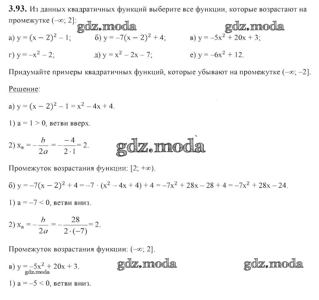 ОТВЕТ на задание № 3.93 Учебник по Алгебре 8 класс Арефьева