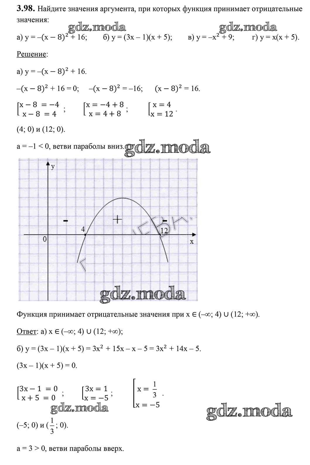 ОТВЕТ на задание № 3.98 Учебник по Алгебре 8 класс Арефьева