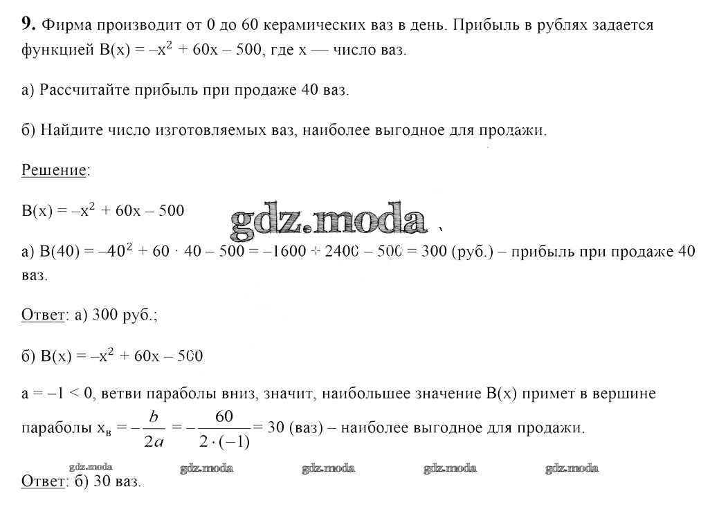 ОТВЕТ на задание № 9 Учебник по Алгебре 8 класс Арефьева