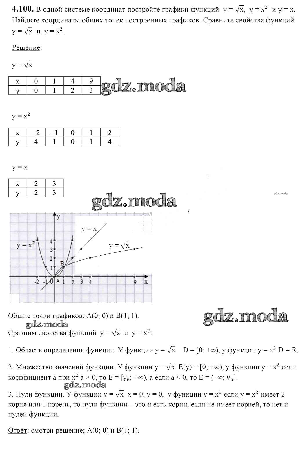 ОТВЕТ на задание № 4.100 Учебник по Алгебре 8 класс Арефьева
