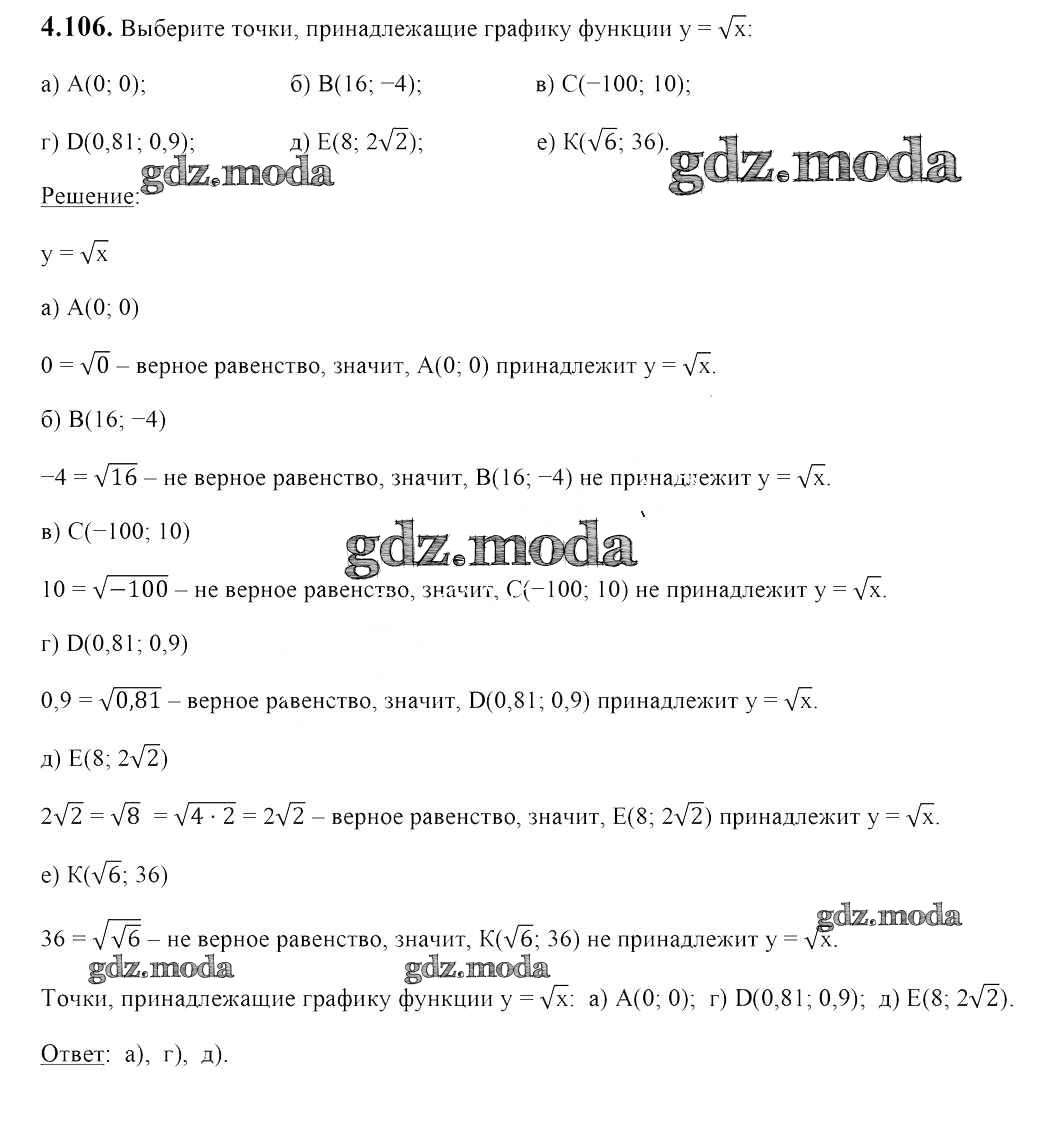 ОТВЕТ на задание № 4.106 Учебник по Алгебре 8 класс Арефьева