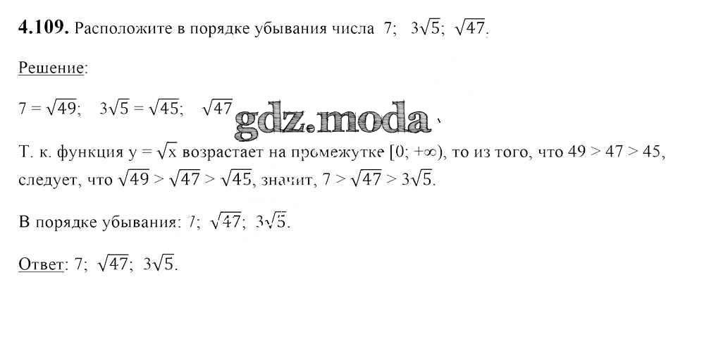 ОТВЕТ на задание № 4.109 Учебник по Алгебре 8 класс Арефьева