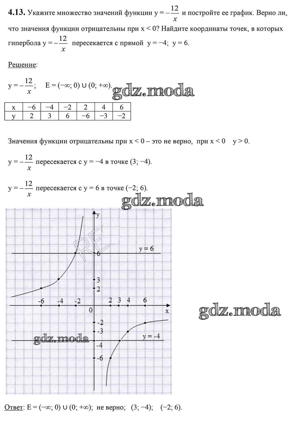 ОТВЕТ на задание № 4.13 Учебник по Алгебре 8 класс Арефьева