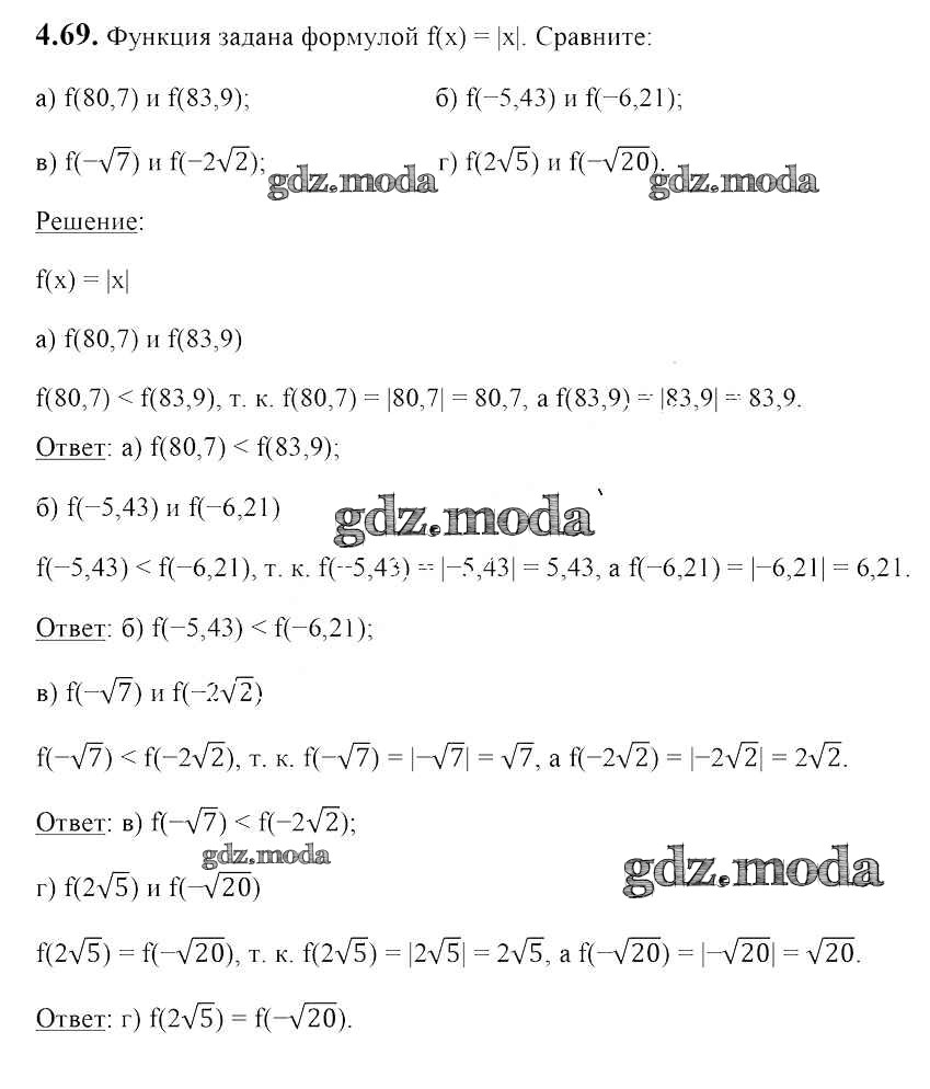 ОТВЕТ на задание № 4.69 Учебник по Алгебре 8 класс Арефьева