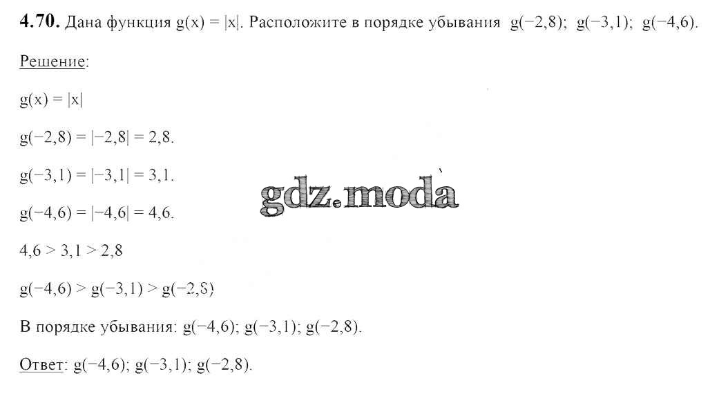 ОТВЕТ на задание № 4.70 Учебник по Алгебре 8 класс Арефьева