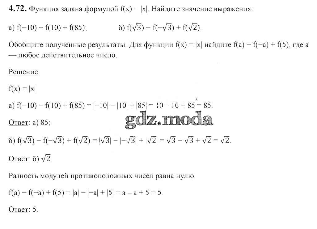 ОТВЕТ на задание № 4.72 Учебник по Алгебре 8 класс Арефьева