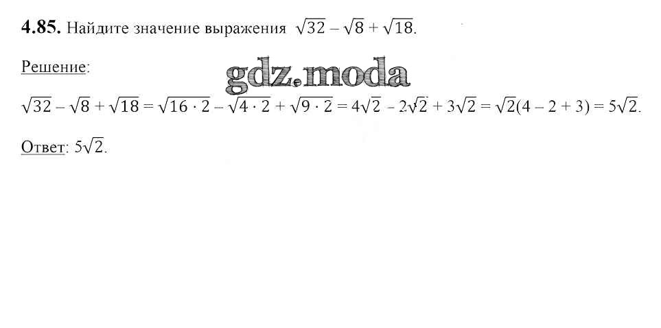 ОТВЕТ на задание № 4.85 Учебник по Алгебре 8 класс Арефьева